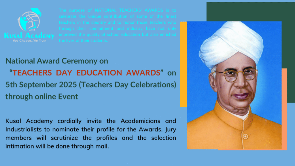 To honor exceptional educators both within Kusal Academy and across other institutions in Andhra Pradesh and Telangana. This initiative promotes teaching innovation, excellence, and community-building—aligning with Kusal Academy’s mission to nurture outstanding educators.